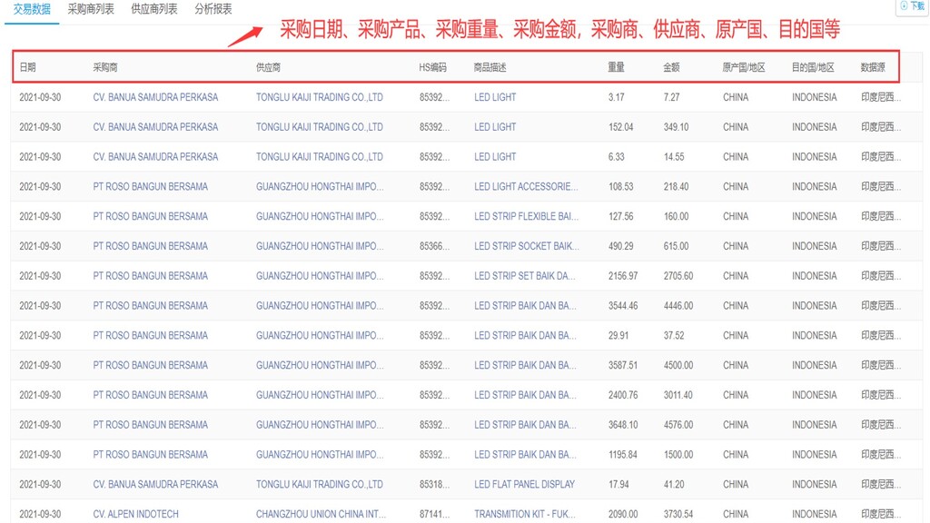 每週更新全球採購與供應鏈資料,涵蓋買家與供應商的交易關係、採購重量、金額走勢與供應鏈結構。